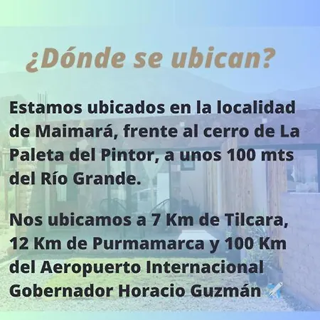 Вилла Cielos De Maimara расположена в 4 км от Пукары-де-Тилкары и радует гостей патио и садом. В комнатах есть патио, диван, телевизор с плоским экраном и спутниковыми каналами, а также к услугам гостей оснащённая всем необходимым кухня с микроволновой печью, электрочайником и холодильником.
